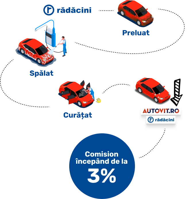 • După ce ne furnizezi detaliile mașinii, stabilim împreună o dată pentru ridicarea acesteia de acasă sau de la birou.