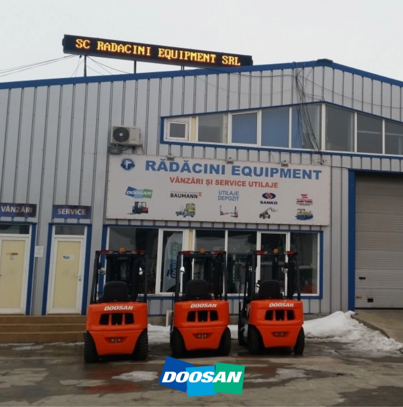 Din acel moment utilajele au preluat numele noii companii. Rădăcini Equipment oferă o gamă largă de stivuitoare frontale cu acționare diesel, GPL/benzină, electro-stivuitoare și utilaje pentru construcții.